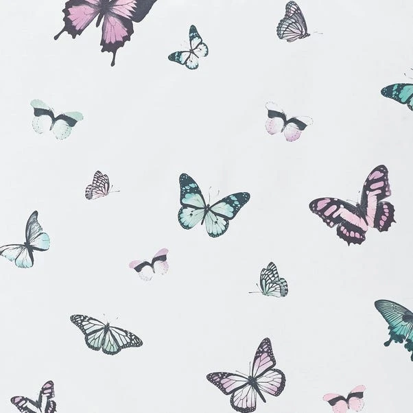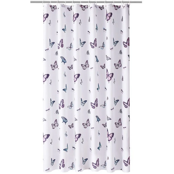 Finished in a natural colour and decorated with a repeated butterfly motif, this shower curtain is made from water resistant material and includes rustproof eyelets.