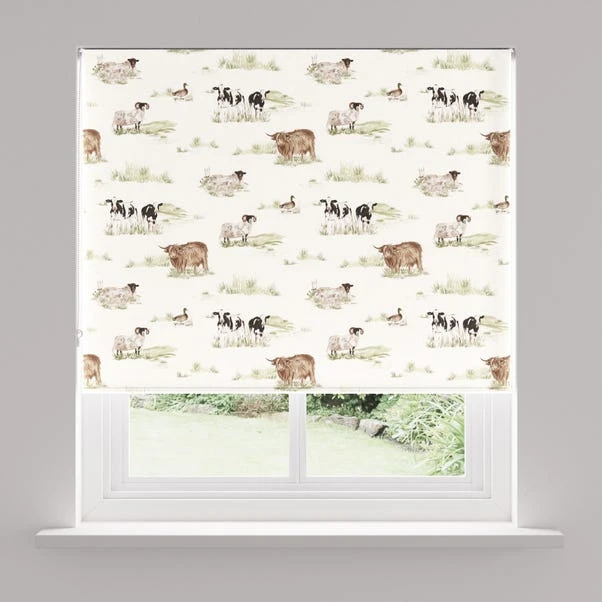 Our Highland Cow daylight roller blind features scenes of farm animals designed in lovely natural tones suitable to compliment all types of decor. Supplied with all fixtures included, this roller blind is made from a durable matt polyester fabric and is available in a range of widths.