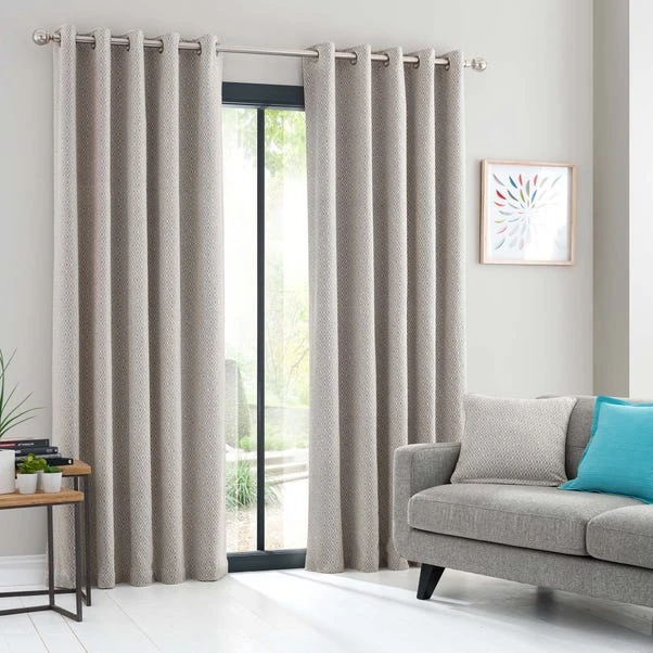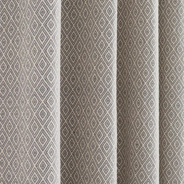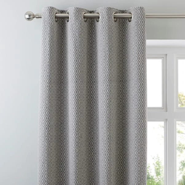 Available in a choice of sizes this pair of grey patterned Elements curtains are fully lined and complete with an eyelet header.