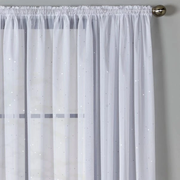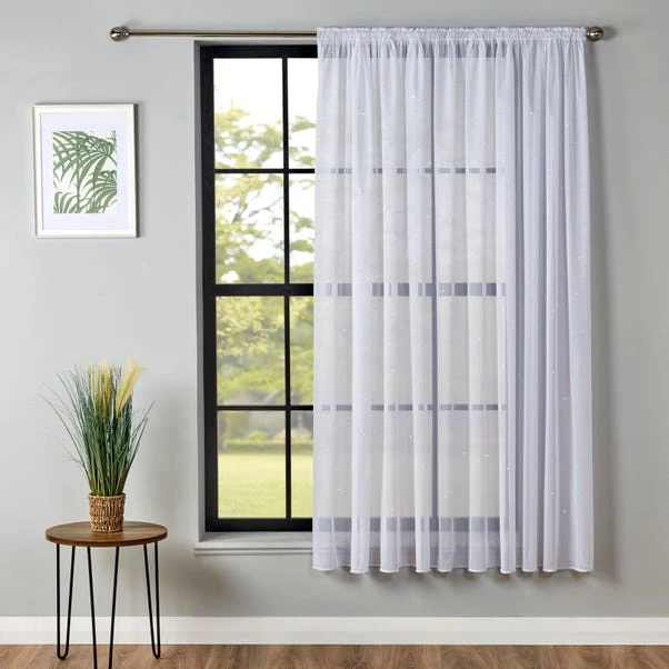 Our Sequin Voile has a faint vertical stripe design with dainty sequin embellishments, perfect for adding a touch of glamour into a room. The voile has been finished with a slot top which can be hung both inside and outside of the recess. Our voile offers privacy to your home in style. Easily care for the lace by hand washing when cleaning is required.